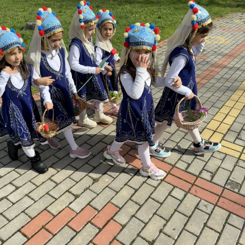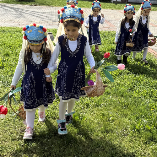 С песен, усмивки и пъстри носии нашите малки лазарки внесоха пролетно настроение и красота в двора на детската градина 🌷