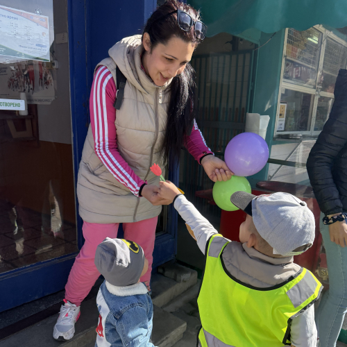 Деца от детската градина се включиха в една много красива и вдъхновяваща инициатива, посветена на Международния ден на жената. Заедно с ученици от ПГАТ „Цанко Церковски“ – гр. Павликени, те подариха на дамите в града ръчно оцветени цветя, изработени с много старание, усмивки и детска обич.
