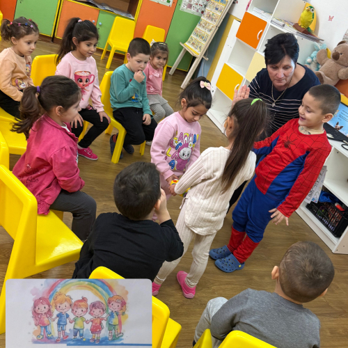 По време на първата беседа децата с интерес слушаха приказка, разказана по достъпен и емоционален начин. Те споделяха впечатления, разпознаваха героите и изразяваха чувства,и преживявания.