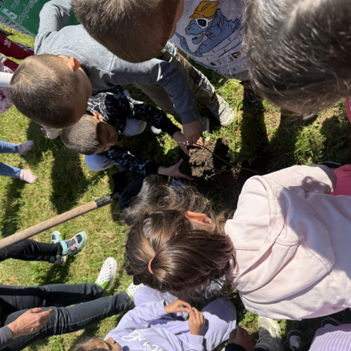 С много радост и ентусиазъм децата засадиха 10 дръвчета- люляк, които са символ на новото начало, грижата и надеждата. Всяко дръвче носи със себе си обещание за по-зелено утре и усмивка за бъдещето.